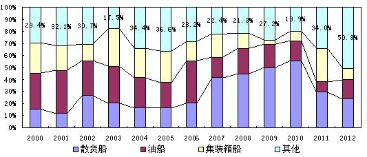 圖5. 2000-2012年三大主力船型訂單占比變化情況