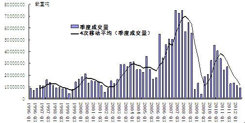 1. 1996-2012年全球新船訂單季度成交量走勢