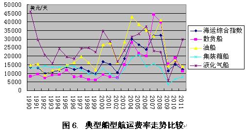 2011年國(guó)際航運(yùn)市場(chǎng)表現(xiàn)大跌眼鏡,運(yùn)費(fèi)水平大幅走低;無(wú)論是油船船東,散貨船船東,還是特種船船東,甚至集裝箱船船東,再度陷入巨額虧損的局面,慘狀實(shí)在不堪入目。據(jù)統(tǒng)計(jì),2011年反映油船、散貨船、集裝箱船和液化氣船運(yùn)費(fèi)變化的克拉克松海運(yùn)綜合費(fèi)率指數(shù)平均為12238美元/天,較去年同期下降19.4%。其中,平均油運(yùn)運(yùn)費(fèi)收益水平降至13865美元/天,較上一年下降20.4%,創(chuàng)近12年以來(lái)新低;干散貨平均運(yùn)費(fèi)收益水平降至9323美元/天,較上一年下滑41.0%,創(chuàng)近9年以來(lái)新低;盡管2011年集裝箱平均運(yùn)費(fèi)收益水平達(dá)到7841美元/天,較上年增長(zhǎng)19.1%,但自去年4月底創(chuàng)出年度高點(diǎn)10599美元/天高點(diǎn)后就一路走低,到年底已經(jīng)降至3947美元/天,下滑幅度深達(dá)62.7%。