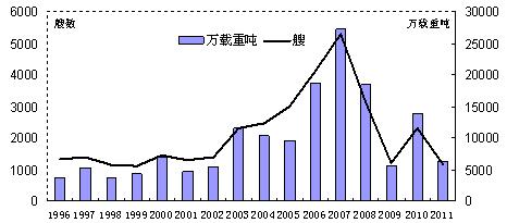 圖2. 1996-2011年世界新船完工量情況