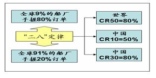 整個(gè)造船市場(chǎng)某種程度上遵循“二八定律”,換句話說(shuō),少數(shù)幾家造船廠(集團(tuán))控制整個(gè)新造船市場(chǎng)。