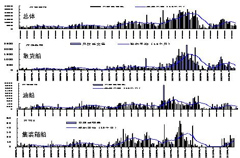 2) 導(dǎo)致市場(chǎng)波動(dòng)大:船舶運(yùn)力增減與海運(yùn)量升降不同步(滯后2年左右),從而,使航運(yùn)市場(chǎng)上供求不平衡加劇。(同樣船廠建設(shè)周期長(zhǎng),產(chǎn)能變化不能與需求匹配)。