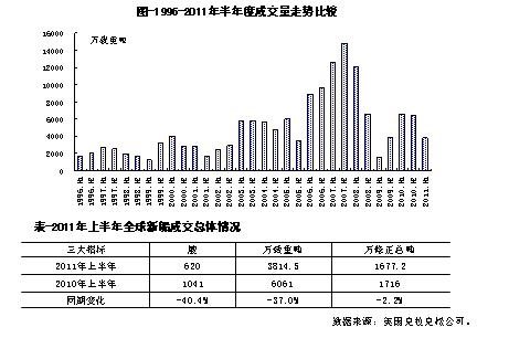 第二,2011年新船成交量將再度大幅回落。按1-6月成交態(tài)勢(shì)測(cè)算,今年全年成交量大致在8000萬(wàn)載重噸左右,較上一年下滑幅度極有可能超過(guò)40%。