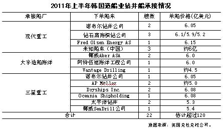 1-6月現(xiàn)代重工、三星重工和大宇造船海洋合計(jì)接單總金額超過(guò)330億美元,不知道是同期中國(guó)全行業(yè)接單價(jià)值總量的多少倍?