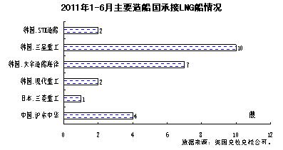 上半年全球成交LNG船26艘,其中,韓國(guó)承接21艘,中國(guó)4艘和日本1艘。