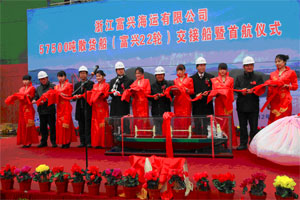 2012年上午10時18分,定海五奎山七萬噸碼頭彩旗飄飄、鞭炮齊鳴、軍樂隊奏著歡快的樂曲。浙江省海運集團舟山五洲船舶修造有限公司舉行了隆重的 “富興22輪”交接船暨首航儀式。浙江富興海運有限公司、浙能集團、浙海海運公司以及有關(guān)單位領(lǐng)導(dǎo)參加了剪彩儀式。五洲公司總經(jīng)理駱永法和富興海運有限公司郭新明總經(jīng)理發(fā)表了熱情洋溢的講話,并互相贈送了禮品。