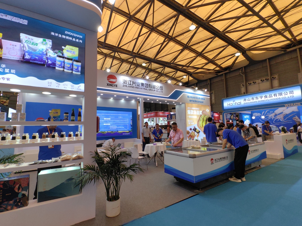 陳國強副會長先后走訪了多家來自舟山的漁業(yè)企業(yè)展位,深入了解企業(yè)在產(chǎn)品研發(fā)、市場拓展、出口貿(mào)易等方面的最新動態(tài),并與協(xié)會理事單位浙江興業(yè)集團有限公司的展位負責人進行了深入交流。興業(yè)集團本身實力雄厚,是國家高新技術(shù)企業(yè),農(nóng)業(yè)產(chǎn)業(yè)化國家重點龍頭企業(yè),全國農(nóng)產(chǎn)品加工業(yè)出口示范企業(yè)。興業(yè)集團已連續(xù)3年參加上海漁博會,通過這一國際性平臺,興業(yè)集團成功吸引了大量國內(nèi)外采購商的關(guān)注,獲得了穩(wěn)定的訂單增長,拓展了客戶資源,提升了品牌知名度。展會期間,興業(yè)集團展示了多款優(yōu)質(zhì)水產(chǎn)品及創(chuàng)新加工產(chǎn)品,吸引了眾多專業(yè)買家駐足洽談,現(xiàn)場氣氛熱烈。